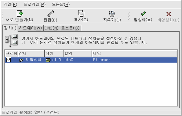 ³×Æ®¿öÅ© °ü¸® µµ±¸¸¦ »ç¿ëÇϽ÷Á¸é, ·çÆ® ±ÇÇÑÀ» °¡Áö°í °è¼Å¾ß ÇÕ´Ï´Ù. ÀÌ ÀÀ¿ë ÇÁ·Î±×·¥À» ½ÃÀÛÇϽ÷Á¸é, ÆÐ³Î¿¡¼ ÁÖ ¸Þ´º ¹öư => ½Ã½ºÅÛ ¼³Á¤ => ³×Æ®¿öÅ©·Î °¡½Ã°Å³ª ½© ÇÁ·ÒÇÁÆ® (¿¹, XTerm ¶Ç´Â GNOME Å͹̳Î)¿¡¼ redhat-config-network ¸í·ÉÀ» ÀÔ·ÂÇÏ½Ã¸é µË´Ï´Ù. X°¡ ½ÇÇà ÁßÀ̶ó¸é ¸í·É ÀÔ·Â ÈÄ ±×·¡ÇÈ ¹öÀüÀÌ ½ÇÇàµÉ °ÍÀ̸ç, ±×·¸Áö ¾Ê´Ù¸é ÅØ½ºÆ® ¹öÀüÀÌ ½ÃÀ۵˴ϴÙ. ÅØ½ºÆ® ±â¹Ý ¹öÀüÀ» ½ÇÇàÇϽ÷Á¸é, redhat-config-network-tui ¸í·ÉÀ» »ç¿ëÇϽñ⠹ٶø´Ï´Ù.