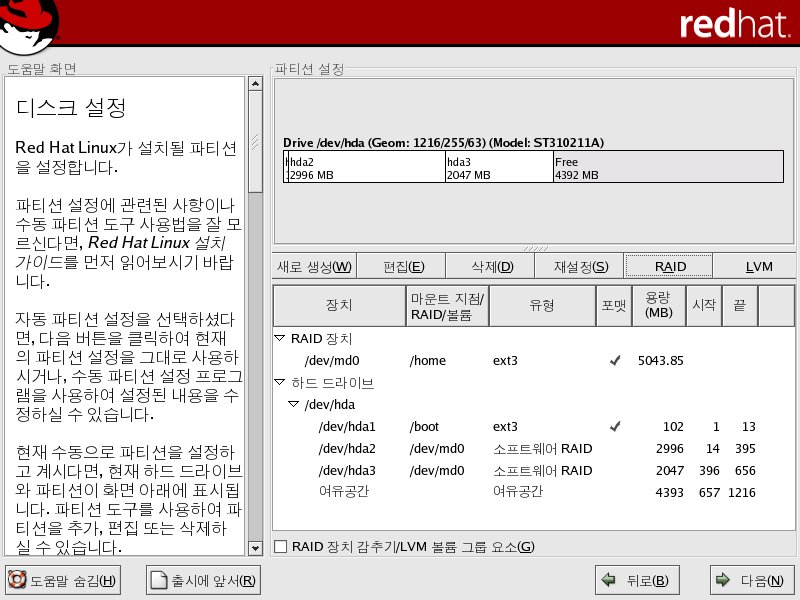 Red Hat LinuxÀÇ ±×·¡ÇÈ ¼³Ä¡³ª ű½ºÅ¸Æ® ¼³Ä¡ °úÁ¤¿¡¼ ¼ÒÇÁÆ®¿þ¾î RAID¸¦ ¼³Á¤ °¡´ÉÇÕ´Ï´Ù. ÀÌ Àå¿¡¼´Â ¼³Ä¡ °úÁ¤¿¡¼ Disk Druid ÀÎÅÍÆäÀ̽º¸¦ »ç¿ëÇÏ¿© ¼ÒÇÁÆ®¿þ¾î RAID¸¦ ¼³Á¤ÇÏ´Â ¹æ¹ý¿¡ ´ëÇÏ¿© ¼³¸íÇØ º¸°Ú½À´Ï´Ù.