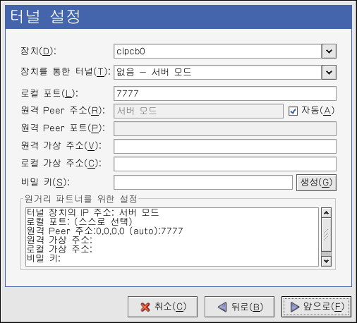 CIPE´Â Crypto IP Encapsulation (¾ÏÈ£±â¼úÀÌ Àû¿ëµÈ IP ÀÎĸ½¶·¹À̼Ç)ÀÇ ÁÙÀÓ¸»ÀÔ´Ï´Ù. CIPE´Â IP Åͳθµ ÀåÄ¡¸¦ ¼³Á¤Çϱâ À§ÇØ »ç¿ëµË´Ï´Ù. ¿¹·Î µé¸é, CIPE´Â ¿ÜºÎ¿¡¼ °¡»ó »ç¼³ Åë½Å¸Á (Virtual Private Network - VPN)À¸·Î Á¢±ÙÀ» Çã°¡Çϴµ¥ »ç¿ëµÉ ¼ö ÀÖ½À´Ï´Ù. CIPE ÀåÄ¡¸¦ ¼³Á¤ÇÏ¼Å¾ß ÇÑ´Ù¸é, Á¤È®ÇÑ °ª¿¡ ´ëÇÏ¿© ½Ã½ºÅÛ °ü¸®ÀÚ¿¡°Ô ¹®ÀÇÇØº¸½Ã±â ¹Ù¶ø´Ï´Ù.