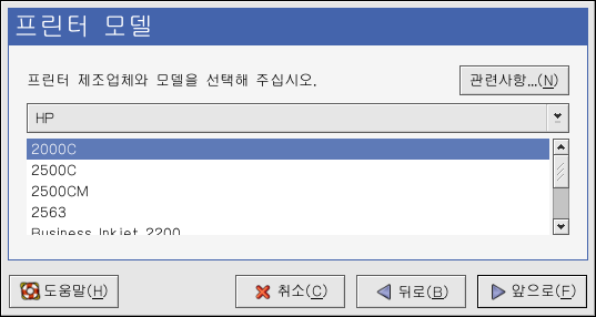 ±×¸² 27-10¿¡¼­ º¸¿©Áö´Â â°ú À¯»çÇÑ Ã¢ÀÌ ³ªÅ¸³¯ °ÍÀÔ´Ï´Ù. ¸¸ÀÏ ÇÁ¸°ÅÍ ¸ðµ¨ÀÌ ÀÚµ¿À¸·Î °Ë»öµÇÁö ¾Ê¾Ò´Ù¸é, ¿©·¯ºÐÀÌ Á÷Á¢ ¸ñ·Ï¿¡¼­ ¸ðµ¨À» ¼±ÅÃÇØ ÁֽʽÿÀ. ÇÁ¸°Å͵éÀº Á¦Á¶¾÷ü¿¡ µû¶ó ºÐ·ùµÇ¾î ÀÖ½À´Ï´Ù. Ç®´Ù¿î ¸Þ´º¿¡¼­ ÇÁ¸°ÅÍ Á¦Á¶¾÷üÀÇ À̸§À» ¼±ÅÃÇϽʽÿÀ. ´Ù¸¥ Á¦Á¶¾÷ü°¡ ¼±ÅÃµÉ ¶§¸¶´Ù ÇÁ¸°ÅÍ ¸ðµ¨ÀÌ ¾÷µ¥ÀÌÆ®µË´Ï´Ù. ¸ñ·Ï¿¡¼­ ÇÁ¸°ÅÍ ¸ðµ¨À» ¼±ÅÃÇϽñ⠹ٶø´Ï´Ù.