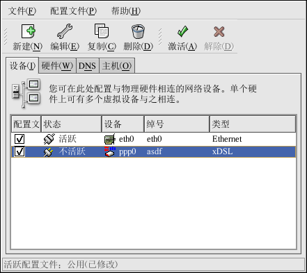 当设备被添加后,它不会被立即激活,你会看到「不活跃」状态。要激活某设备,从设备列表中选择它,然后点击「激活」按钮。如果系统配置了要在计算机启动是激活设备(默认),你不必重新执行这一步骤。