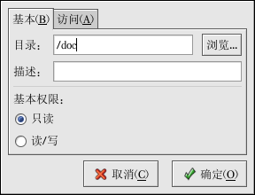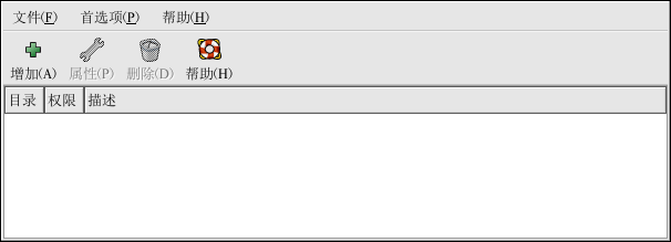 要使用该程序,你必须在运行 X 窗口系统,具备根特权,并且安装了 redhat-config-samba RPM 软件包。要从桌面启动 Samba 服务器配置工具,点击面板上的「主菜单」 => 「系统设置」 => 「服务器设置」 => 「Samba 服务器」,或在 shell 提示(如 XTerm 或 GNOME 终端)下键入 redhat-config-samba 命令。