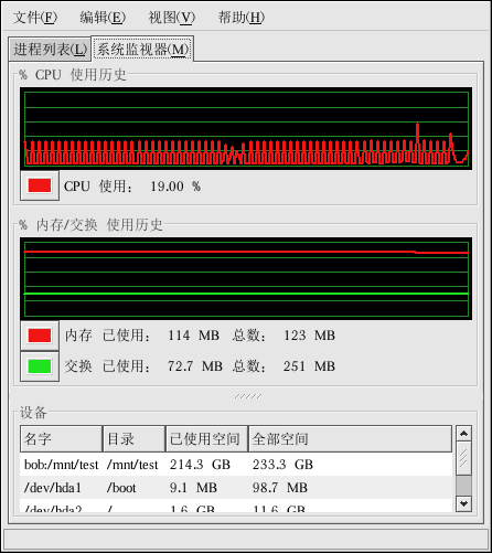 如果和 free 相比,你更喜欢使用图形化界面,你可以使用 GNOME 系统监视器。要从桌面上启动它,选择面板上的「主菜单」 => 「系统工具」 => 「系统监视器」或在 X 窗口系统的 shell 提示下键入 gnome-system-monitor。然后选择「进程列表」标签。
