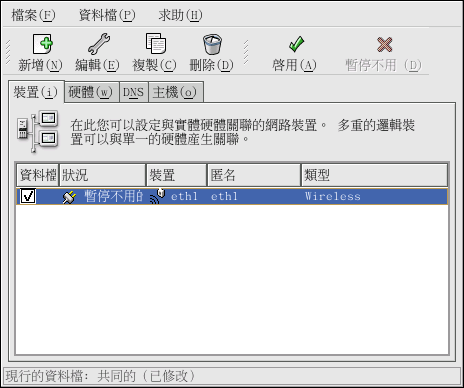 在新增完無線網路裝置後,您可以從裝置清單中選取它,再點選 編輯 的按鈕來修改它的設定。 例如您可以設定是否要在開機時啟動這個裝置。