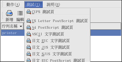 在您設定好您的印表機後,您應該要列印測試頁以確定印表機可以正常運作。 如要列印測試頁,請從印表機清單中選擇您想要測試的印表機,然後從 『測試』 的下拉式選單中選擇適當的測試頁。