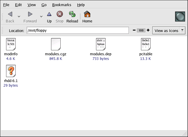 Now that the diskette has been mounted it is available to be copied from or written to. You can open, save, and copy files to/from it as you would normally do to your hard drive. You can even explore the diskette's contents in Nautilus (as shown in Figure 4-1) or Konqueror.