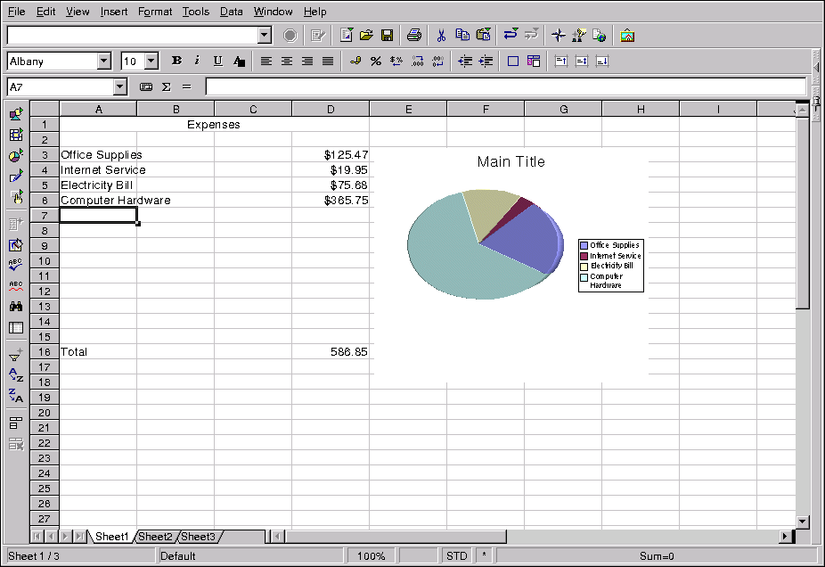 OpenOffice.org Calc allows you to enter and manipulate personal or business data. For example, you can create a personal budget by entering data descriptions (such as rent, groceries, and utilities) into column A and the quantities of those data descriptions in column B. OpenOffice.org Calc allows you to enter the data either in the cell itself by double clicking the cell and typing your information or by using the Input Line (the text box on the toolbar). Then you can run a formula on column B to come up with a total. OpenOffice.org Calc has several preset functions and calculations (such as =SUM() for addition/multiplication, =quotient() for division, and =subtotal()for preparing receipts). For detailed information about creating functions for calculating your numerical data in OpenOffice.org Calc, refer to the documentation by selecting Help => Contents.