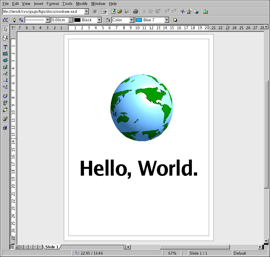 For more information on using OpenOffice.org Draw, refer to the documentation located at Help => Contents from the file menus.