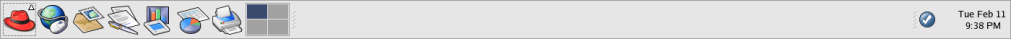 The desktop panel is the bar that stretches across the bottom of the screen and holds icons and small applications which makes using your system easier. The panel also holds the Main Menu, which contains shortcuts for all of your applications. Applets embedded on the panel allow you to run specific tasks or monitor your system or services while remaining out of your way. The notification area holds alert icons such as the one for Red Hat Network so that you can be quickly alerted to critical messages.