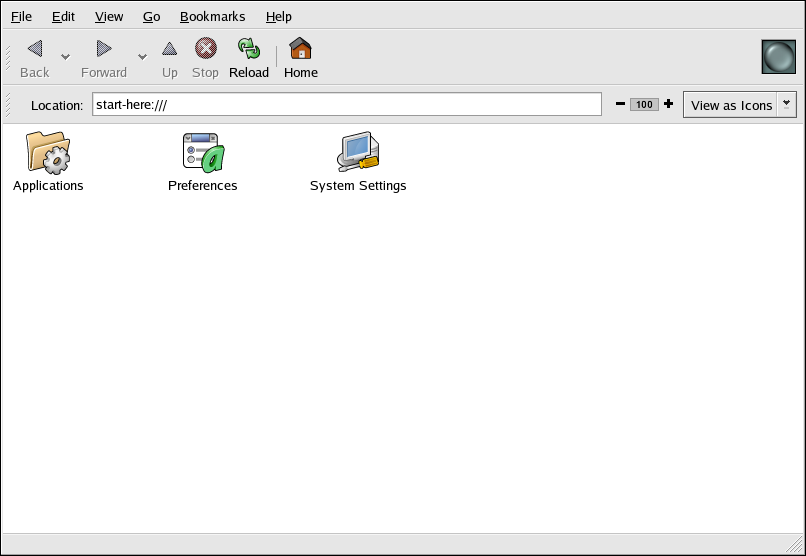 Start Here was designed to hold all of the tools and applications you need to access when using your system. From your favorite applications to system and configuration tools, the Start Here window provides a central location for using and customizing your system.