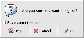 To quit the graphical desktop, select the Log Out menu item from the Main Menu. This will bring up a dialog which presents you with the options listed above.