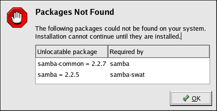 The packages necessary to fulfill the dependency issues can be installed by following the steps in Section 15.3 Installation CD-ROMs.