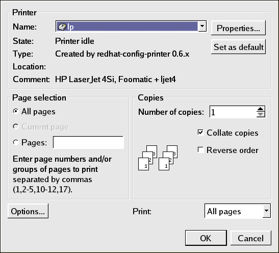 Also located on the Panel is a Print Manager icon. To print a file from Nautilus, browse to the location of the file and drag and drop it on to the Print Manager icon on the Panel. The window shown in Figure 8-10 is displayed. Click OK to start printing the file.