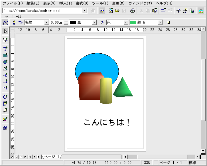 OpenOffice.org Drawの使い方 の詳細については、ファイルメニューのヘルプ => 内容にある説明を参照してください。