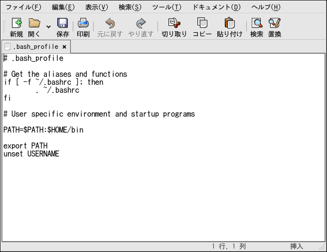 編集エリアが表示されます。すぐにgedit
