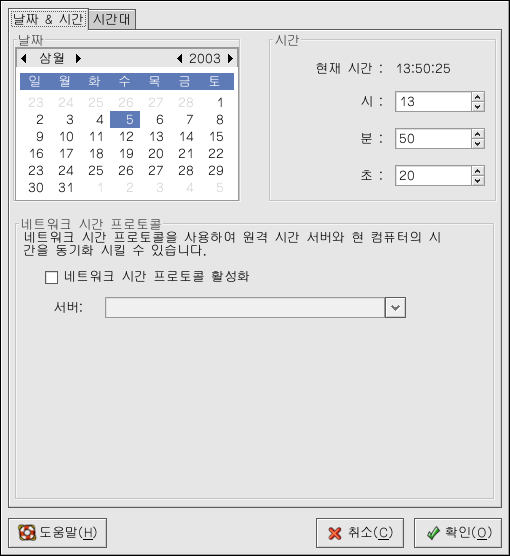 ÀÌ ÀÀ¿ë ÇÁ·Î±×·¥À» »ç¿ëÇϽ÷Á¸é X À©µµ¿ì ½Ã½ºÅÛÀ» ½ÇÇàÇÏ½Ã°í ·çÆ® ±ÇÇÑÀ» °¡Áö°í °è¼Å¾ß ÇÕ´Ï´Ù. µ¥½ºÅ©Å¾¿¡¼ ÀÀ¿ë ÇÁ·Î±×·¥À» ½ÇÇàÇϽ÷Á¸é ÆÐ³Î¿¡¼ ÁÖ ¸Þ´º ¹öưÀ» Ŭ¸¯ÇϽŠÈÄ ½Ã½ºÅÛ ¼³Á¤ => ³¯Â¥ & ½Ã°£À» ¼±ÅÃÇϽðųª ½© ÇÁ·ÒÇÁÆ® (¿¹, XTermÀ̳ª GNOME Å͹̳Î)¿¡¼ redhat-config-date ¸í·ÉÀ» ÀÔ·ÂÇÏ½Ã¸é µË´Ï´Ù.