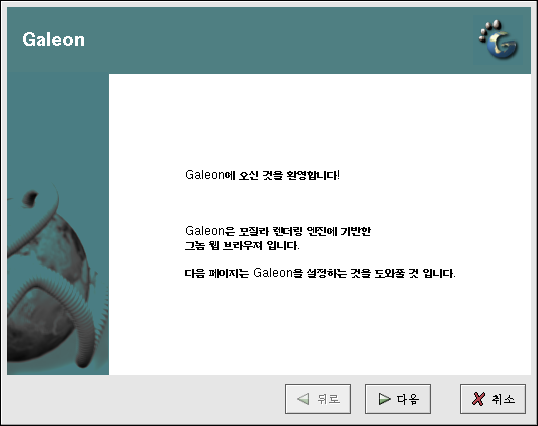 GaleonÀ» óÀ½À¸·Î ½ÇÇàÇϽøé, ´Ü°èº° ¼³Á¤ÀÌ ½ÃÀ۵˴ϴÙ.