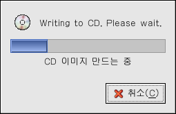 ±Á±â¸¦ ½ÃÀÛÇϽ÷Á¸é Write files to CD ¹öưÀ» Ŭ¸¯ÇϽʽÿÀ. ±×¸² 4-7¿¡¼ º¸¿©Áö´Â °Íó·³, ±Á±â ÁøÇà »óȲÀ» º¸¿©ÁÖ´Â »óÅ âÀÌ ³ªÅ¸³¯ °ÍÀÔ´Ï´Ù.