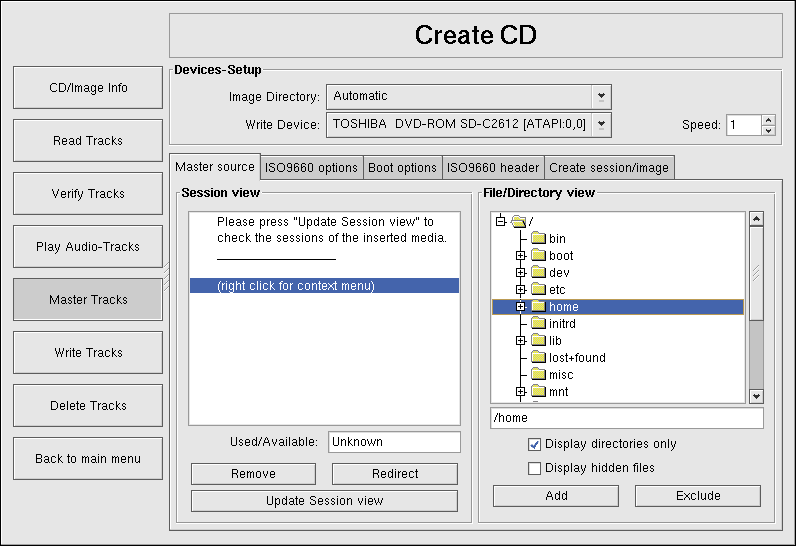 Çϵå¿þ¾î °íÀåÀ̳ª ÆÄÀÏ ½Ã½ºÅÛ ¼Õ»ó¿¡ ´ëºñÇÏ¿© ÀÚÁÖ °³ÀÎ¿ë µ¥ÀÌÅÍ¿Í Á¤º¸¸¦ ¹é¾÷ÇÏ´Â °ÍÀº ¾ðÁ¦³ª ±ÇÀåµÇ´Â »çÇ×ÀÔ´Ï´Ù. X-CD-Roast´Â ¿©·¯ºÐÀÌ CD »ý¼º(Create CD) ¹öưÀ» »ç¿ëÇÏ¿© ÇÏµå µå¶óÀÌºê ÆÄÆ¼¼ÇÀÇ ÆÄÀÏÀ» ¹é¾÷ÇÒ ¼ö ÀÖ°Ô ÇØÁÝ´Ï´Ù. Master Tracks ¹öưÀ» »ç¿ëÇÏ¿© ÆÄÀϰú µð·ºÅ丮¸¦ ÇϳªÀÇ CD ¼¼¼ÇÀ¸·Î Ãß°¡ÇÒ ¼ö ÀÖ½À´Ï´Ù. Master Tracks ´ëÈ »óÀÚ ³»¿¡´Â °í±Þ ¼ÂÆÃÀ» ¼³Á¤ÇÒ ¼ö ÀÖ°Ô ÇØÁÖ´Â ´Ù¸¥ ¿É¼ÇµéÀÌ Á¸ÀçÇÏÁö¸¸, ±âº» ¼³Á¤ÀÌ ÀÌ¹Ì µ¥ÀÌÅÍ CD-ROMÀ» »ý¼ºÇÒ ¼ö ÀÖµµ·Ï Á¦´ë·Î ¼³Á¤µÇ¾î Àֱ⠶§¹®¿¡ ´õ ÀÌ»óÀÇ ¼³Á¤Àº ÇÊ¿äÇÏÁö ¾Ê½À´Ï´Ù. ±×¸² 4-10Àº Àüü /home µð·ºÅ丮¸¦ ¹é¾÷Çϱâ À§ÇØ ÁغñÇϰí ÀÖ´Â ¼¼¼ÇÀ» º¸¿©ÁÝ´Ï´Ù.