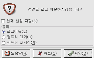 GNOMEÀ» Á¾·áÇϽ÷Á¸é, ÁÖ ¸Þ´º¿¡¼ ·Î±× ¾Æ¿ô ¸Þ´º Ç׸ñÀ» ¼±ÅÃÇϽʽÿÀ. À̶§ ¿¸®´Â È®ÀÎ ´ëÈ »óÀÚ¿¡´Â ¾Õ¼ ¾ð±ÞÇÑ ¿É¼ÇµéÀÌ ³ªÅ¸³¯ °ÍÀÔ´Ï´Ù.
