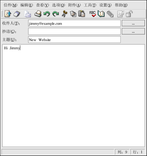 配置了电子邮件设置后,你就能够开始收发电子邮件了。KMail 屏幕左侧的邮件夹允许你查看你收到的电子邮件、你准备寄出的电子邮件、你已寄出的电子邮件等等。