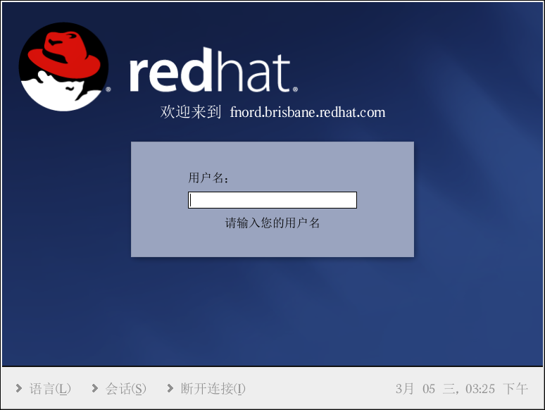 使用 Red Hat Linux 系统的下一个步骤是登录。登录实际上是你向系统做自我介绍,又称验证(authentication)。如果你键入了错误的用户名或口令,你就不会被允许进入系统。