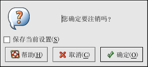 当如图 1-13所示的确认对话框出现后,选择「注销」选项,然后点击「确定」按钮。如果你想保存桌面的配置以及还在运行的程序,点击「保存当前设置」选项。