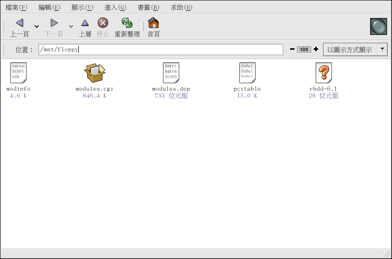 您可以使用 cd /mnt/floppy/ 指令轉換到該目錄,您便可以存取這磁碟片的內容。