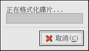 放入一磁碟片並更改 gfloppy 中的設定以適合您的需求; 然後點選 格式化。 會在主視窗上出現一個格式化進度的視窗,向您顯示格式化與檢驗的狀況 (請看 圖形 4-3)。 完成後,您可以退出磁碟片並關閉 gfloppy。