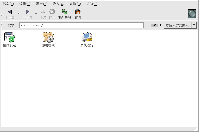 在 Nautilus 中的 『起點』 畫面含有額外的設定工具,可以幫助您使用您新的 Red Hat Linux 系統與所收錄的伺服器應用程式。