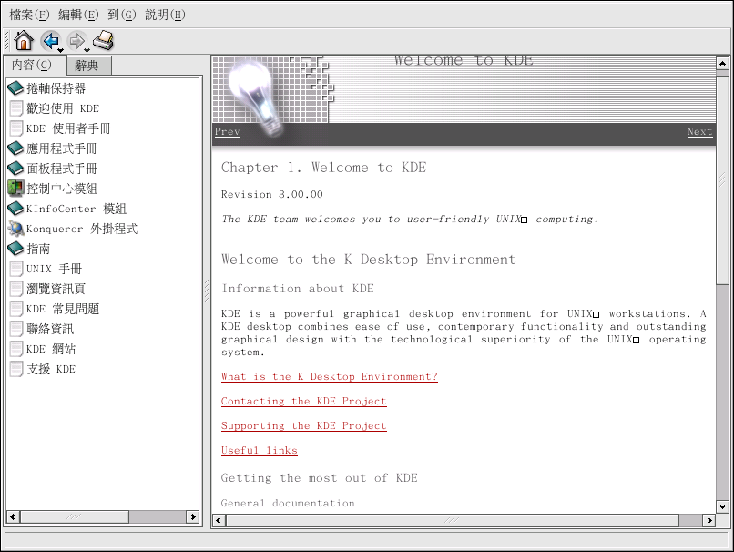 您可以透過 輔助中心 來瀏覽關於 KDE 的一套廣泛的說明文件。