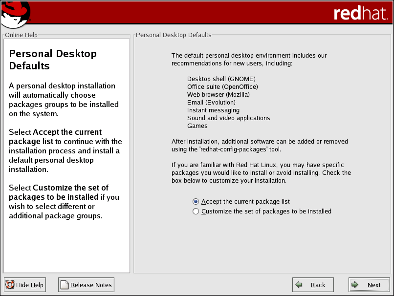 For example, if you were to perform a Personal Desktop installation, you may see a screen such as this: