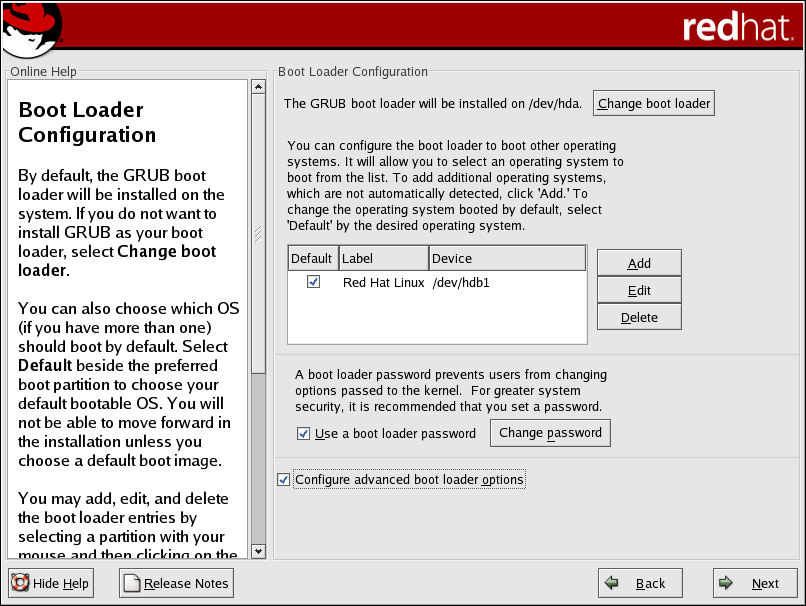 If you choose to use a boot loader password to enhance your system security, be sure to select the checkbox labeled Use a boot loader password.
