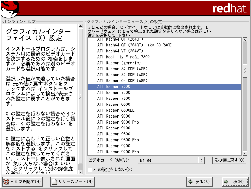 ¥¤¥ó¥¹¥È¡¼¥ë¤ò´°Î»¤·¤¿¸å¤Ç¡¢X¤ÎÀßÄê¤ò Êѹ¹¤¹¤ë¤Ë¤Ï¡¢X ÀßÄê¥Ä¡¼¥ë¤ò»ÈÍÑ ¤·¤Þ¤¹¡£ ¥·¥§¥ë¥×¥í¥ó¥×¥È¤Çredhat-config-xfree86 ¤ÈÆþÎϤ·¤Æ¡¢X ÀßÄê¥Ä¡¼¥ë¤òµ¯Æ°¤·¤Þ¤¹¡£ root°Ê³°¤ÇÁàºî¤·¤Æ¤¤¤ë¾ì¹ç¡¢Â³¤±¤ë¤Ë¤Ïroot¥Ñ¥¹¥ï¡¼¥É¤¬Í׵ᤵ¤ì¤Þ¤¹¡£ |