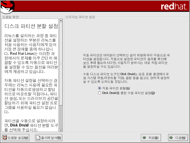 ÀÌ È¸é¿¡¼ ÀÚµ¿ ÆÄƼ¼ÇÀ» ¼öÇàÇϰųª Disk Druid¸¦ ÅëÇÑ ¼öµ¿ ÆÄƼ¼ÇÀ» ¼öÇàÇÒ °ÍÀÎÁö¸¦ ¼±ÅÃÇÏ½Ç ¼ö ÀÖ½À´Ï´Ù.