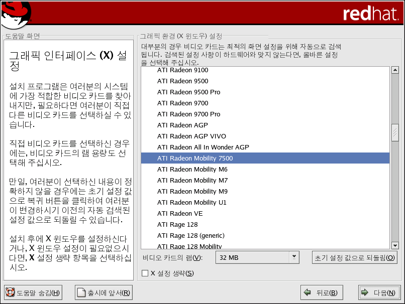 ¼³Ä¡°¡ ³¡³ ÈÄ¿¡ X ¼³Á¤À» º¯°æÇϽ÷Á¸é, X ¼³Á¤ µµ±¸¸¦ »ç¿ëÇϽʽÿÀ. ½© ÇÁ·ÒÇÁÆ®¿¡¼ redhat-config-xfree86 ¸í·ÉÀ» ÀÔ·ÂÇÏ¿© X ¼³Á¤ µµ±¸¸¦ ½ÇÇàÇÕ´Ï´Ù. ·çÆ®°¡ ¾Æ´Ï¶ó¸é, ·çÆ® ¾ÏÈ£¸¦ ÀÔ·ÂÇϽŠÈÄ °è¼Ó ÁøÇàÇÕ´Ï´Ù. |